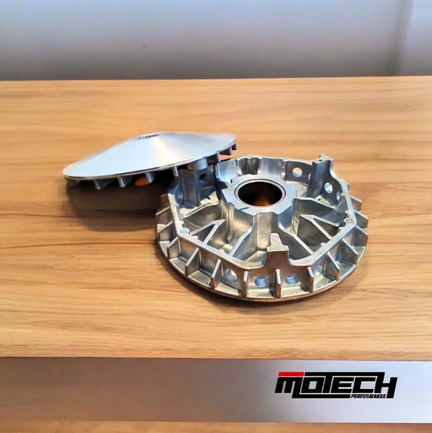 Pertama: Primary pulley (rumah roller & kipasnya) akan kita custom kemiringan derajatnya, kerok jalur roller dgn metode menggunakan milling, sehingga setiap jalurnya akan rapih & presisi, bagian kipas jg kena sentuhan mesin bubut sehingga lebih enteng & berkarakter